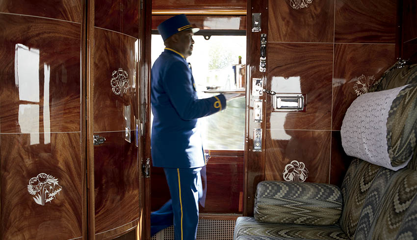 Deite-se em meio a móveis luxuosos, lençóis limpos e móveis artesanais em nossas cabines magnificamente restauradas da década de 1920. Peça café da manhã para sua cama ou um coquetel enquanto se veste para o jantar. Nossos comissários estão sempre a apenas uma curta ligação de distância.